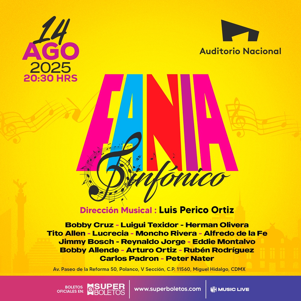 La noche del jueves 14 de agosto de 2025, cuando el reloj marque las ocho y media, el Auditorio Nacional de la Ciudad de México abrirá sus puertas para recibir uno de los homenajes más esperados por los verdaderos amantes de la salsa: Fania Sinfónico, una velada en la que la leyenda no se evocará con palabras, sino con metales vibrantes, cuerdas elegantes y voces cargadas de historia. Será una cita con el alma de una época que cambió para siempre la música latina, una invocación sinfónica a los espíritus de la salsa que, bajo el emblema inmortal de la Fania All-Stars, transformaron barrios, encendieron plazas, abrazaron culturas y enseñaron al mundo que el ritmo también puede ser revolución. Boletos a la venta en el Sistema Superboletos y en taquillas del inmueble.